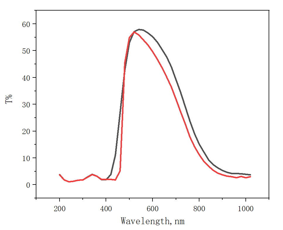 This product is a specialized laser barrier masterbatch specially developed for the field of laser protection, suitable for laser protection lenses with multiple band barriers. Especially considering the laser protection wavelength range of around 200-450nm and 750-1500nm. There are various options for light transmittance, including high transmittance of 70% and low transmittance of 30%. If the OD value is above OD4, choose the appropriate product based on the required light transmittance of the customer's board. The amount of addition is determined by the thickness of the board, and the thicker the board, the smaller the required amount of addition. Similarly, the thinner the material, the higher the amount added. If the customer needs a higher OD value, they need to increase the amount added. The following is the spectrum of the high transparency product: This product is made of inorganic materials and has excellent weather resistance. Sample testing is available.
